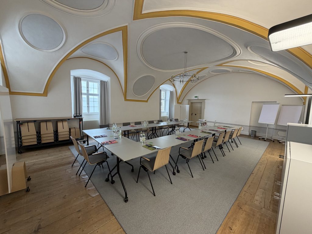 Ab sofort stehen Ihnen im Dientzenhofer-Saal, dem Tafelzimmer und dem Konferenzraum unsere neuen Raumkonzepte zur Verfügung, die komplett auf größtmögliche Variabilität ausgerichtet sind! Die roll- und klappbaren Tische sind für Besprechungen und Vorträge sicher miteinander verbunden und bieten damit gewohnten Komfort und Zuverlässigkeit! Bei Bedarf lassen sie sich innerhalb weniger Sekunden entriegeln, zusammenklappen und platzsparend zur Seite rollen, damit Ihnen die gesamte Raumfläche ohne Hindernisse zur Verfügung steht. Damit können Sie selbst den Raum stets genau so anpassen und nutzen, wie Sie ihn gerade brauchen!