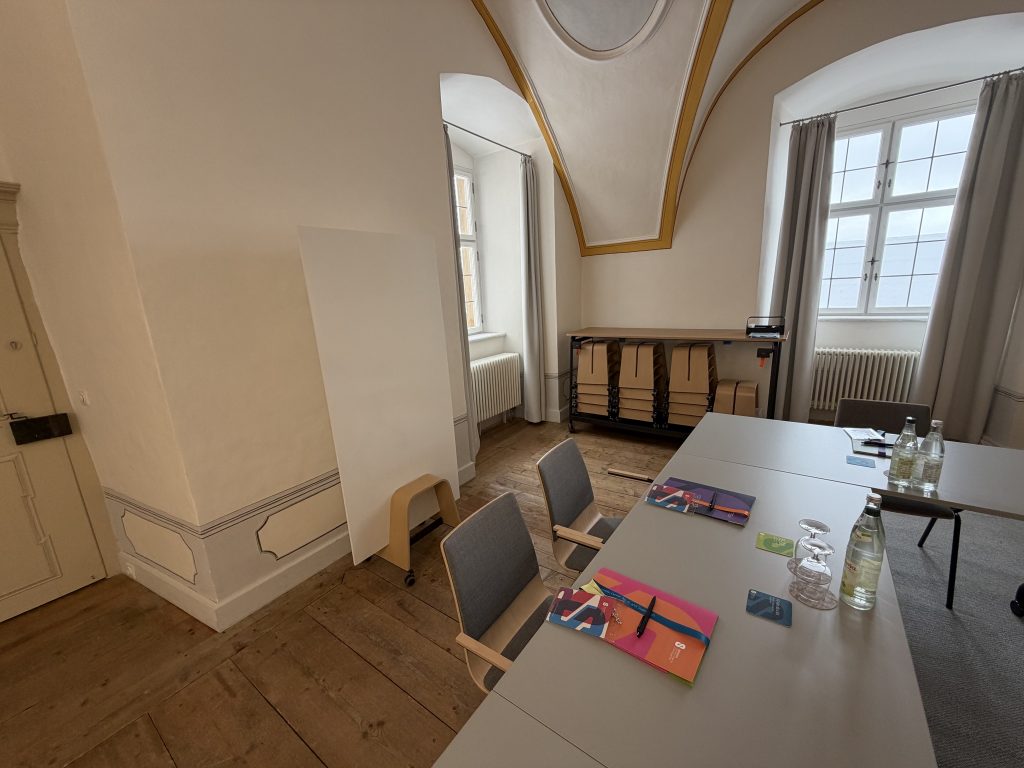 Starting now, our new room concepts are available to you in the Dientzenhofer Hall, the Tafelzimmer, and the Conference Room, designed entirely for maximum flexibility. The rolling, foldable tables are securely connected for meetings and presentations, providing the comfort and reliability you are used to. When needed, they can be unlocked, folded down, and rolled aside in a matter of seconds, freeing up the entire room without obstacles. This allows you to adapt and use the space exactly as you need it, at any time.